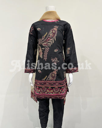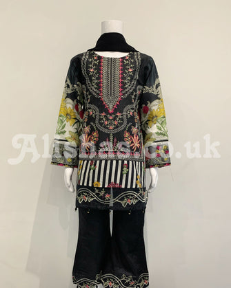 Black Girls Digital Lawn Kameez Suit with Trousers and Chiffon Duppata