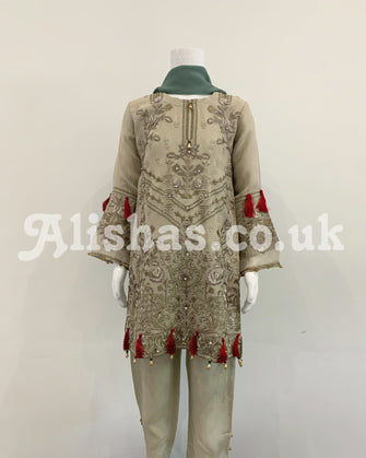 Festive Girls Lawn Gold Fancy Embellished Dress Suit