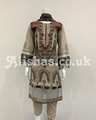 Girls Maze Fancy Embroidered Chiffon Suit With Trousers and Chiffon Duppata