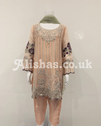 Blush Pink Girls Fancy Embellished Chiffon Kameez Suit