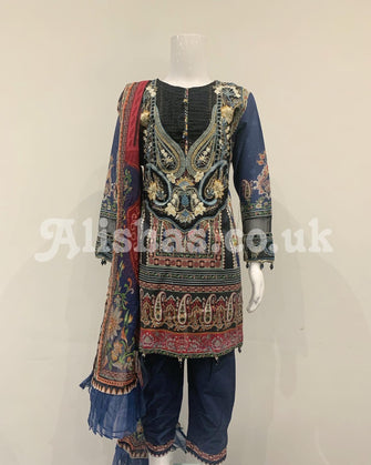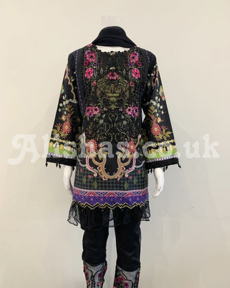 Black Girls Digital Lawn Kameez Suit with Trousers and Chiffon Duppata