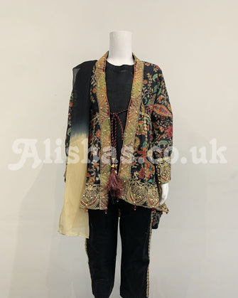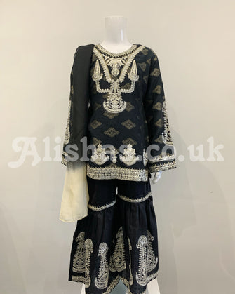 Festive Black Girls Jacket Fancy Embroidered Suit