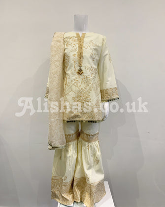 Festive Girls Lawn Gold Fancy Embellished Dress Suit