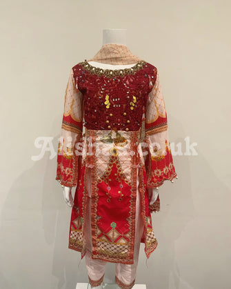 Ivana Designer Girls Red Slit Dress Suit with Trousers and Digitial Chiffon Duppata