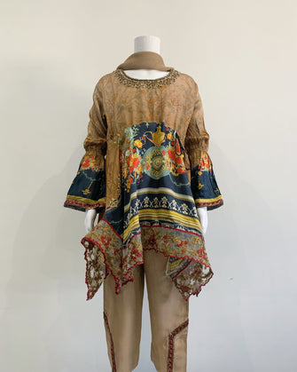 Girls Multi Peplum Layered Dress Suit with Trousers and Chiffon Duppata