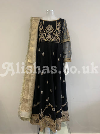 IVANA Ladies Designer Black Cotton Dress Suit with Garara and Chiffon Duppata