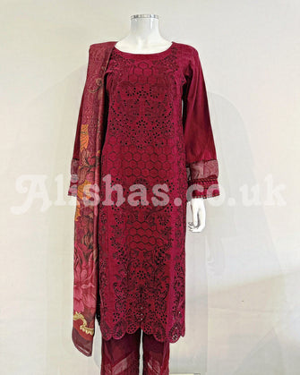 Simrans Deep Red Chickankari Embroidered Kameez Suit