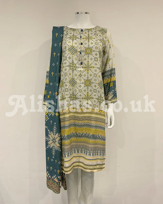 RAFIA Designer Mustard Contrast Khaddar Kameez Suit with Trousers and Shawl