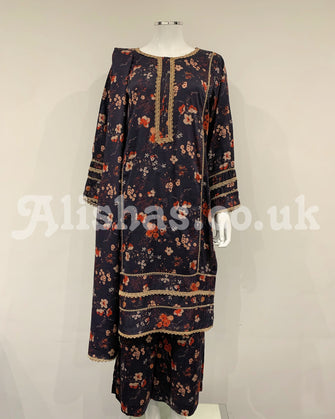 RAFIA Designer Embezzled Digital Print Viscose Dress Suit