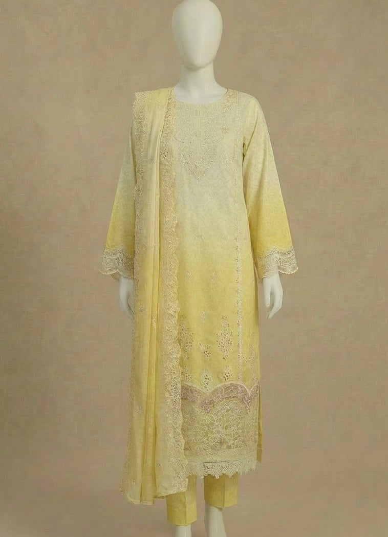 Luxury Lawn Lemon Ombre Embroidered Suit by Rafia